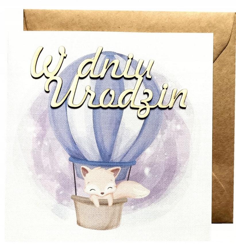 Kartka okolicznościowa z okazji urodzin o treści: Idzie misio, idzie konik, małpka, piesek no i słonik. Wszyscy razem z balonami, z najlepszymi życzeniami. Bo to dzień radosny wielce - masz już jeden roczek więcej! W Dniu Urodzin Tobie życzy?