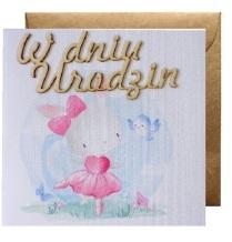 Kartka okolicznościowa z okazji urodzin o treści: Idzie misio, idzie konik, małpka, piesek no i słonik. Wszyscy razem z balonami, z najlepszymi życzeniami. Bo to dzień radosny wielce - masz już jeden roczek więcej! W Dniu Urodzin Tobie życzy?