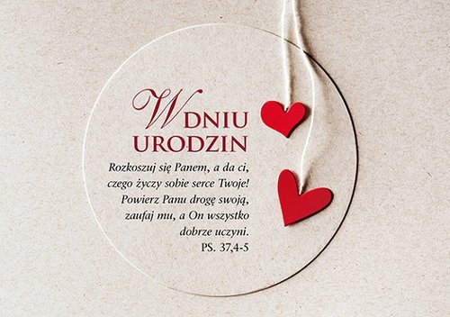 Kartka składana z kopertą. W DNIU URODZIN Rozkoszuj się Panem, a da ci, czego życzy sobie serce Twoje! Powierz Panu drogę swoją, zaufaj mu, a On wszystko dobrze uczyni. PS. 37,4-5