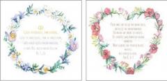Kartka okolicznościowa z delikatnym ornamentem, to połączenie subtelnych kolorów i techniki akwarelowej z cytatem z Pisma Świętego: