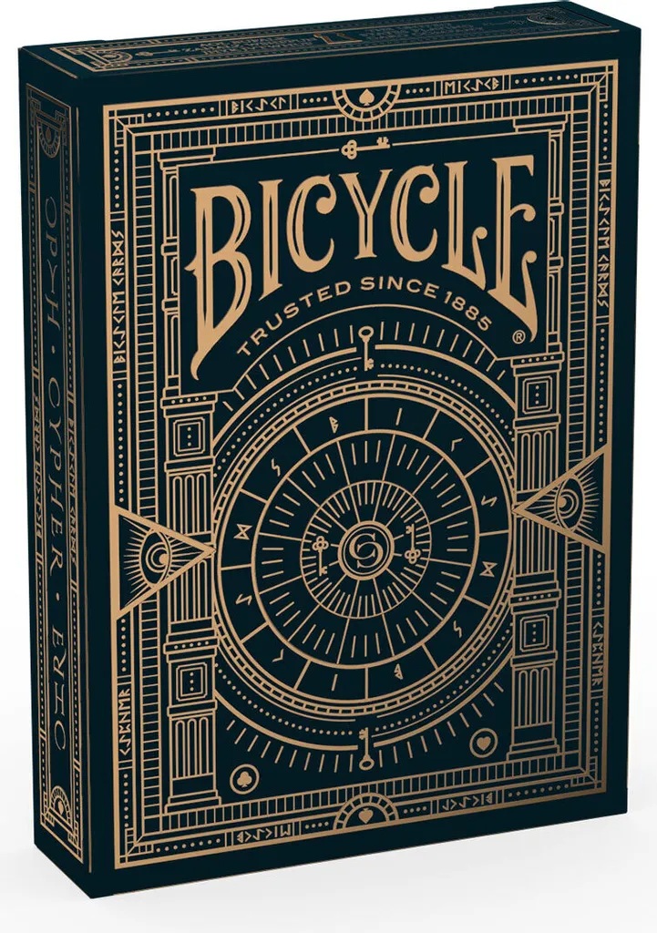 Karty Bicycle Cypher inspirowany jest tajemniczymi symbolami i kryptografią używaną przez tajne, historyczne stowarzyszenia. Rewersy i awersy kart zawierają zaszyfrowaną wiadomość, którą kolekcjonerzy mogą rozszyfrować. Klucz do tłumaczenia znajduje się na dodatkowej karcie wewnątrz talii.