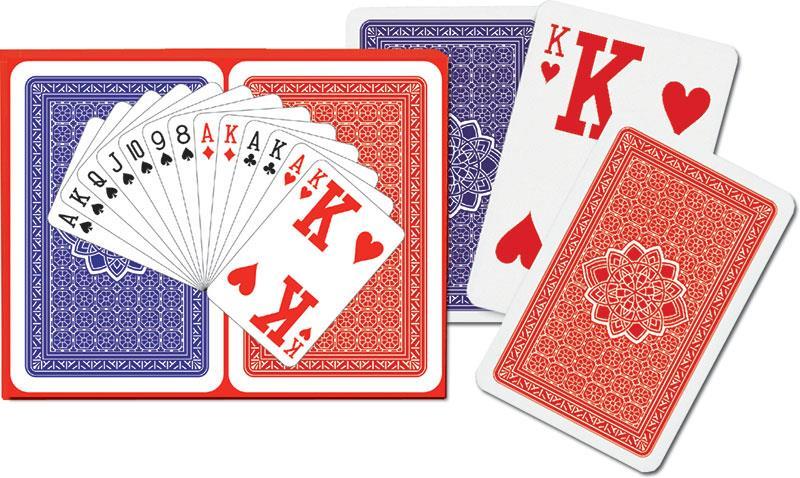 Najwyższej jakości karty do gry renomowanej firmy Ferd. Piatnik & Sohne wyprodukowane specjalnie dla osób bardzo słabo widzących. W komplecie 2 talie z wielkimi indeksami w efektownym Piatnikowskim pudełku. Talie składają się z 55 plastikowanych kart o wymiarach 58 x 89 mm i gramaturze 310. Idealne zarówno do brydża, pokera, remika jak i innych gier. Wyroby wiedeńskiej fabryki Ferd. Piatnik & Sohne od 1824 roku urzekają bogactwem wzorów i perfekcją wykonania. Jakość i tradycja!