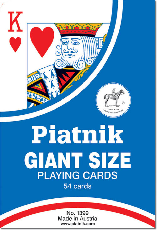 Najwyższej jakości karty o bardzo dużym rozmiarze (18 x 11 cm). Pełnowartościowa talia 54 kart wykorzystywana głównie do pokazów.