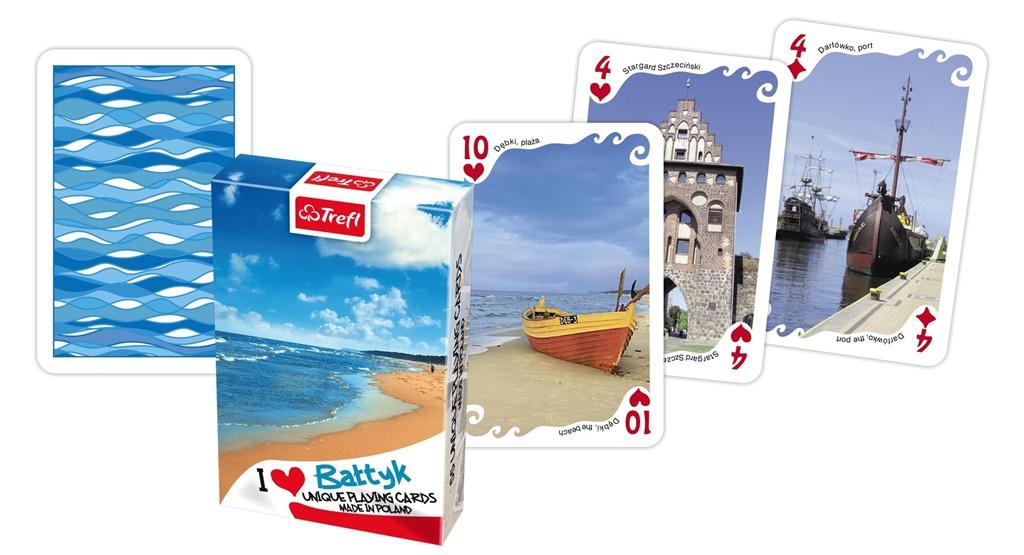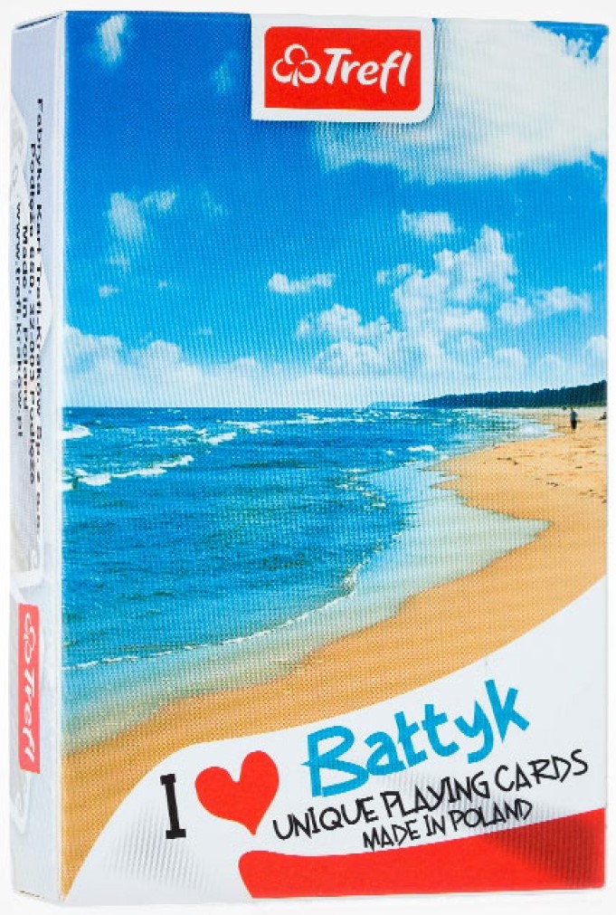 Unikalna kolekcja kart ""Kocham Polskę"" została stworzona z myślą o graczach, którzy lubują się w niebagatelnych wzorach i spersonalizowanych produktach przywołujące na myśl wyjątkowe wspomnienia. Tym razem przygotowaliśmy specjalne wydanie dla tych, którzy kochają zachody słońca nad Bałtykiem. Latarnia morska w Kołobrzegu, piaszczyste plaże Wisełki czy urokliwe kamieniczki w Mielnie - wszystkie te miejsca, piękne i wyjątkowe, uwieczniliśmy w kolekcji kart, którą z przyjemnością Państwu przedstawiamy. Zdjęcia najpiękniejszych miejsc nad Bałtykiem przypominają morską falę, a na rewersie umieściliśmy podwodny świat ryb. Nieważne, czy mieszkamy nad morzem, w górach, czy na Mazowszu - przepiękne pocztówkowe zdjęcia na kartach przywołają wspomnienie lata i umilą każdą rozgrywkę. Karty są doskonałym pomysłem na upominek z wakacji lub oryginalną pamiątkę.