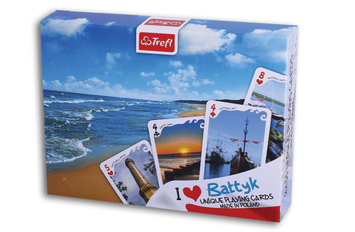 Unikalna kolekcja kart ""Kocham Polskę"" została stworzona z myślą o graczach, którzy lubują się w niebagatelnych wzorach i spersonalizowanych produktach przywołujące na myśl wyjątkowe wspomnienia. Tym razem przygotowaliśmy specjalne wydanie dla tych, którzy kochają zachody słońca nad Bałtykiem. Latarnia morska w Kołobrzegu, piaszczyste plaże Wisełki czy urokliwe kamieniczki w Mielnie - wszystkie te miejsca, piękne i wyjątkowe, uwieczniliśmy w kolekcji kart, którą z przyjemnością Państwu przedstawiamy. Zdjęcia najpiękniejszych miejsc nad Bałtykiem przypominają morską falę, a na rewersie umieściliśmy podwodny świat ryb. Nieważne, czy mieszkamy nad morzem, w górach, czy na Mazowszu - przepiękne pocztówkowe zdjęcia na kartach przywołają wspomnienie lata i umilą każdą rozgrywkę. Karty są doskonałym pomysłem na upominek z wakacji lub oryginalną pamiątkę.