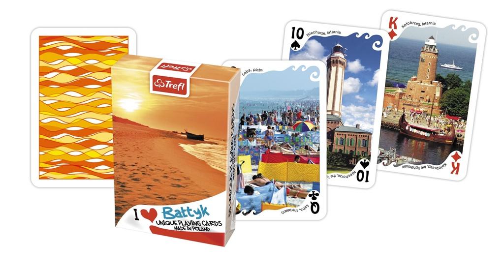 Unikalna kolekcja kart ""Kocham Polskę"" została stworzona z myślą o graczach, którzy lubują się w niebagatelnych wzorach i spersonalizowanych produktach przywołujące na myśl wyjątkowe wspomnienia. Tym razem przygotowaliśmy specjalne wydanie dla tych, którzy kochają zachody słońca nad Bałtykiem. Latarnia morska w Kołobrzegu, piaszczyste plaże Wisełki czy urokliwe kamieniczki w Mielnie - wszystkie te miejsca, piękne i wyjątkowe, uwieczniliśmy w kolekcji kart, którą z przyjemnością Państwu przedstawiamy. Zdjęcia najpiękniejszych miejsc nad Bałtykiem przypominają morską falę, a na rewersie umieściliśmy podwodny świat ryb. Nieważne, czy mieszkamy nad morzem, w górach, czy na Mazowszu - przepiękne pocztówkowe zdjęcia na kartach przywołają wspomnienie lata i umilą każdą rozgrywkę. Karty są doskonałym pomysłem na upominek z wakacji lub oryginalną pamiątkę.
