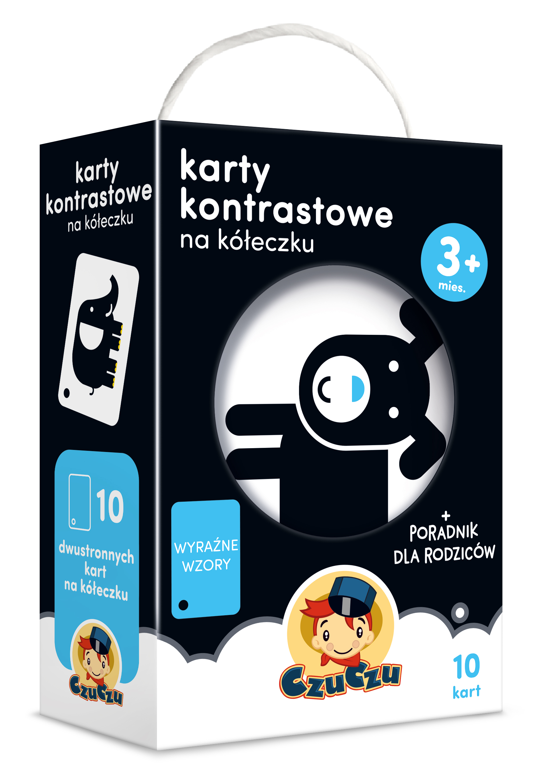 Nigdy nie jest za wcześnie na wspólne odkrywanie świata! Karty kontrastowe na kółeczku to zestaw stworzony z myślą o rodzicach, którzy chcą aktywnie wspierać swoje maluszki w rozwoju. Oglądanie 20 kontrastowych ilustracji dostosowanych do poziomu percepcji nieco starszych niemowląt, które są już wstanie wyodrębnić z całości niewielkie elementy, pozwala kształtować inteligencję wizualno-przestrzenną, a wspólna zabawa to wspaniały sposób na budowanie więzi i bliskości. Poręczny format i wygodne kółeczko sprawiają, że książeczkę możecie zawsze mieć przy sobie. Sprawdzi się w domu, w podróży i na spacerze, możecie zawiesić ją przy łóżeczku lub wózku. Z dołączonego do zestawu Poradnika dla rodziców dowiecie się, jak widzi niemowlę oraz jak wpierać rozwój maluszka za pomocą książeczki kontrastowej. W serii dostępne są również Karty kontrastowe na kółeczku dla dzieci 0 mies.+.