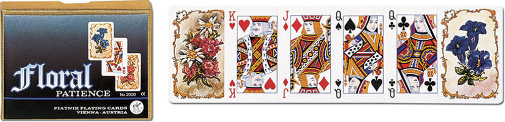 Najwyższej jakości karty do pasjansa renomowanej firmy Ferd. Piatnik & Sohne. Eleganckie pudełeczko kryje 2 niewielkie talie. Mniejszy format sprawia, że łatwiej układa się pasjansa. Talie składają się z 55 plastikowanych kart o wymiarach 44 x 66 mm i gramaturze 310. Wyroby wiedeńskiej fabryki Ferd. Piatnik & Sohne od 1824 roku urzekają bogactwem wzorów i perfekcją wykonania. Jakość i tradycja!