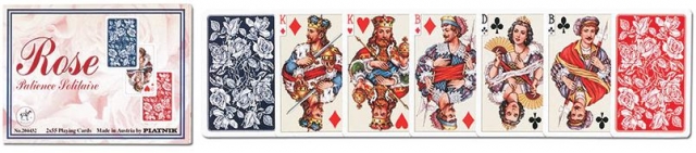 Dwie talie w mniejszym formacie, by łatwiej było układać pasjansa. Na rewersach (koszulkach) interesujący motyw kwiatów alpejskich.