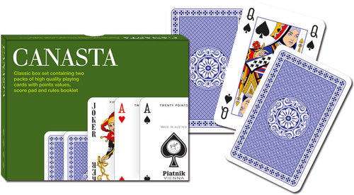 Klasyczne karty do kanasty Piatnika z serii ''New Classic''. W komplecie 2 talie kart z punktacją w języku angielskim oraz bloczkiem do zapisywania punktów. Wyroby wiedeńskiej fabryki Ferd. Piatnik & Sohne od 1824 roku urzekają bogactwem wzorów i perfekcją wykonania. Jakość i tradycja!