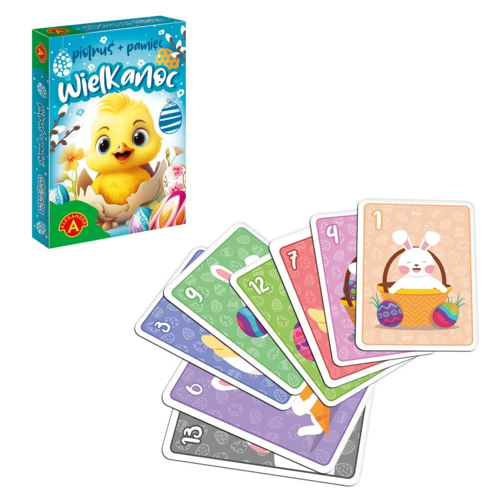 Zestaw 25 kart z pięknymi, obrazkami w klimacie wielkanocnym, dzięki którym można zagrać z dziećmi w dwie podstawowe gry karciane Piotruś i Pamięć. Obie gry wspaniale ćwiczą spostrzegawczość, rozwijają skojarzenia oraz uczą zachowań społecznych. To idealny wstęp dla najmłodszych do świat gier.