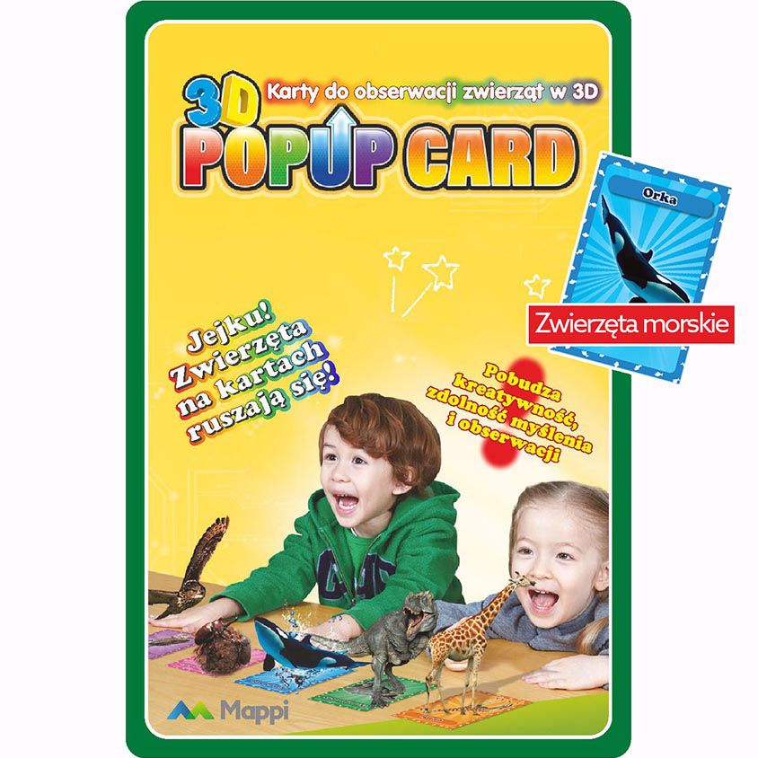 Magiczna seria kart składająca się z dziesięciu sztuk. Na każdej karcie przedstawione jest inne zwierzę, kwiat, ptak, zwierzę morskie, owad czy też dinozaur, w zależności od posiadanej serii. Przy użyciu smarftona luba tabletu oraz darmowej aplikacji można ożywić wybrane stworzenie. Możemy je nakarmić, zrobić sobie z nim zdjęcie oraz obejrzeć z każdej strony. Produkt innowacyjny na polskim rynku wykorzystujący rozszerzoną rzeczywistość. Karty uczą oraz bawią. Karty ze zwierzętami morskimi + darmowa aplikacja z trójwymiarową rzeczywistością rozszerzoną (Augmented Reality – AR)