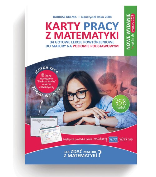 NOWE WYDANIE! Także do matury od 2023 roku. „Karty Pracy z matematyki” to pierwsza seria książek, która zawiera pełne rozwiązania wszystkich zadań „krok po kroku” w wersji interaktywnej! To e-książki, dzięki którym uczeń może się uczyć na tablecie, a nawet na telefonie – w dowolnym miejscu. Nawet jeśli nie ma przy sobie wersji papierowej. Dodatkowym atutem tych książek jest cykliczne powtarzanie tych samych zagadnień, po to by nie zapomnieć już raz powtórzonych treści. Na końcu książki znajduje się indywidualny kod, który aktywuje dostęp do wersji on-line.