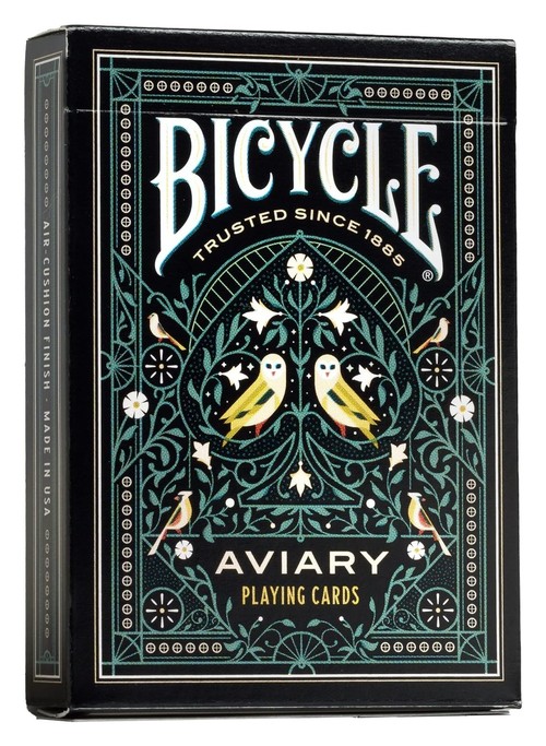 Talia kart AVIARY (woliera) oferuje nowoczesną estetykę, hołdując jednocześnie klasycznym kartom do gry. Wszystkie elementy tali są zilustrowane nieszablonowo. Obejmuje to figury, kolory, rewers i pudełko. Projekt ten z pewnością spodoba się zarówno graczom, jak i zapalonym kolekcjonerom. Marka Bicycle® to najbardziej popularne karty na świecie z Tradycją sięgającą 1885 roku! Talia składa się z 55 kart w rozmiarze 63 x 89 mm, pakowane w pudełko. Karty posiadają standardowe indeksy na przeciwległych narożnikach kart. Karty wyprodukowano z dedykowanego kartonu Bicycle – gwarantującego niespotykaną sztywność, powlekane posiadają specjalne wykończenie Air Cushion Finish, dzięki któremu jedwabiście gładko przesuwają się, zapewniając łatwe tasowanie i optymalną pracę. Karty idealne zarówno do pokera, sztuczek magicznych jak i klasycznych gier karcianych. Dotknij ich i przekonaj się, dlaczego kocha je cały świat!