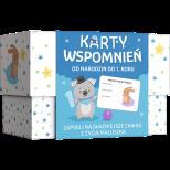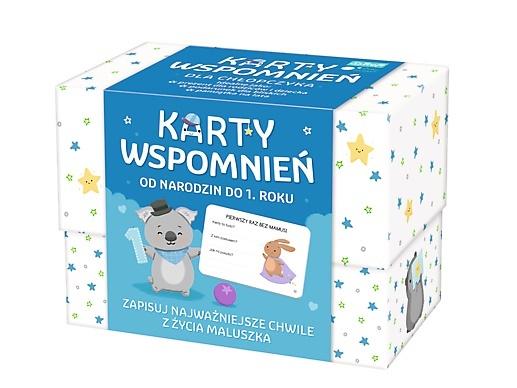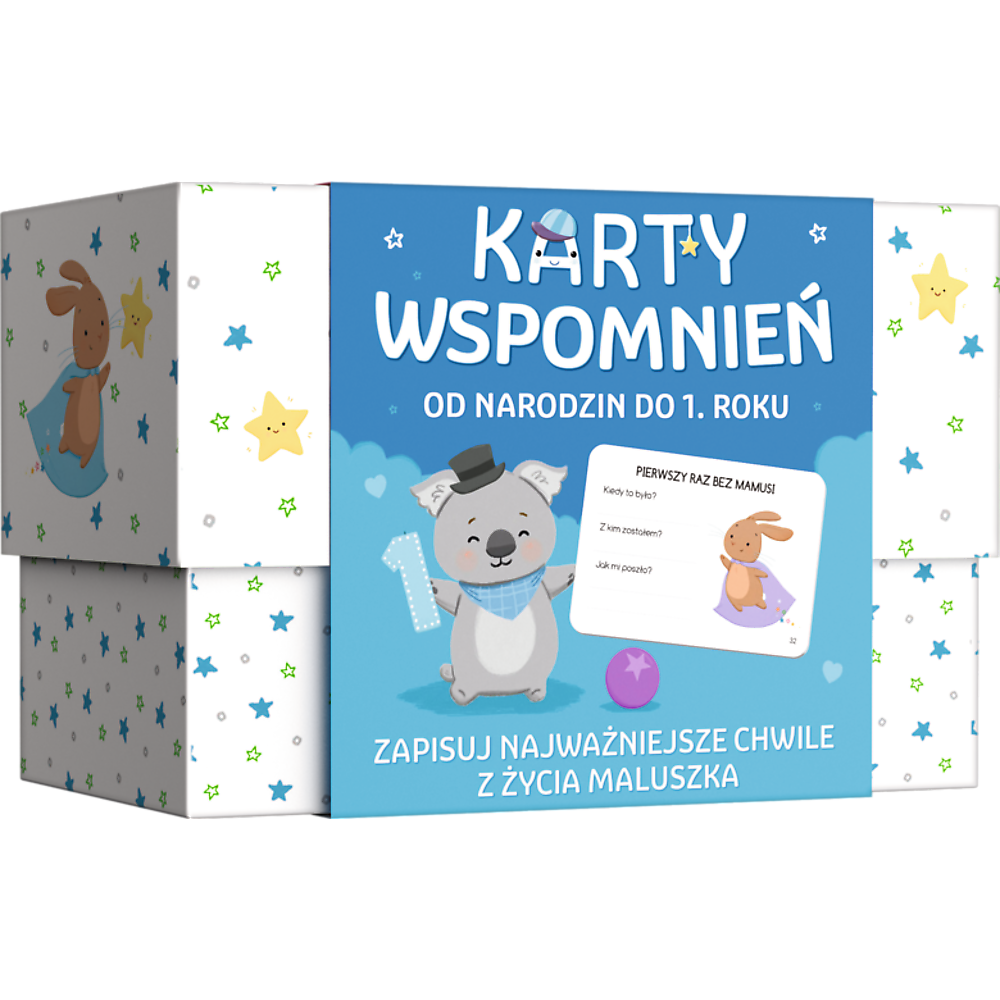 KARTY WSPOMNIEŃ to pamiątkowy album, w którym rodzice mogą zapisać najważniejsze chwile i ciekawe wydarzenia z pierwszego roku życia swojego dziecka. Dostępny jest w 2 wzorach - dla chłopca oraz dla dziewczynki. Album idealnie sprawdzi się jako: Prezent dla rodziców Podarunek dla bliskich, np. babci, dziadka Pamiątka do zachowania na lata Każdy zestaw zawiera: Prezentowe pudełko 30 pięknie ilustrowanych kart z podpowiedziami, do zapisywania najważniejszych momentów życia malucha Karty na dedykację od mamy i od taty 3 karty na dowolne zapiski