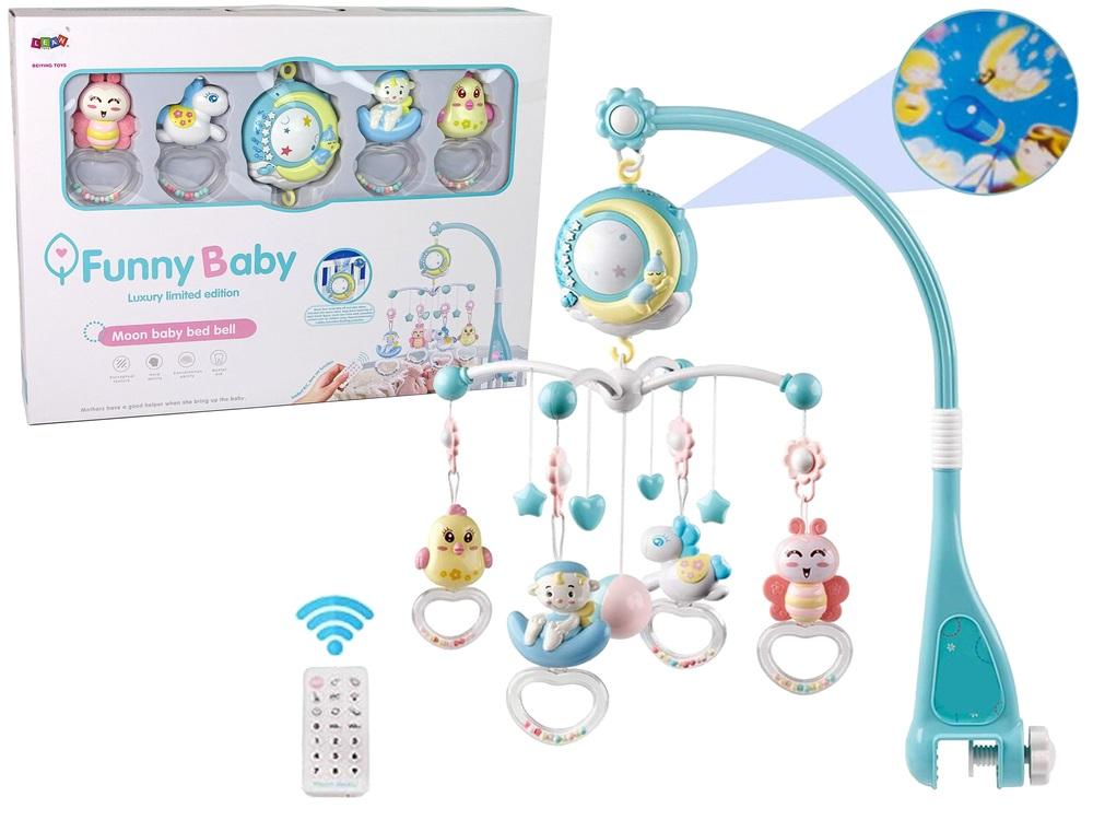 Karuzela Dla Dzieci Projektor Grzechotki Zwierzęta Pilot Bajecznie kolorowa karuzela do łóżeczka to znakomity przyjaciel maluszka, który pomaga w zasypianiu. Przyjemne melodie i nocne światło uspokoją maluszka, a sam będziesz mógł pilnować dziecko przy zgaszonym świetle, dzięki funkcji projektora. Od najmłodszych dbaj o rozwój Twojego dziecka. Kolorowe zawieszki w kształcie przyjaznych zwierząt zainteresują malucha, który zacznie wyciągać rączki i chwytać wiszące przedmioty. Poznają przy tym fakturę i kształt zawieszki oraz rozwijając siłę mięśniową. Każdy na końcu posiada grzechotkę. Karuzelę można zamontować na łóżeczku dziecka. Obraz emitowany przez projektor przyciąga uwagę dziecka. Karuzela posiada regulację natężenia głośności. Dzięki regulowanemu uchwytowi, karuzela pasuje do większości łóżeczek szczebelkowe. Możliwość zamontowania samego projektora przy łóżeczku. Całość sterowana jest za pomocą pilota, który reguluje oświetlenie, głośność oraz wydawane dźwięki. Funkcje karuzeli: - czysty, spokojny dźwięk wygrywanych melodii - 150 melodii do zasypiania - 630 melodii - 6 energicznych piosenek dla dzieci - 5 kawałków odgłosów natury - 10 dźwięków instrumentów - regulacja głośności - projekcja gwiazdek i księżyca -karuzela z projektorem obraca się - możliwość włączenia/wyłączenia obracania się karuzeli - sterowanie za pomocą pilota - uniwersalne mocowanie - pasuje do większości łóżeczek szczebelkowych - karuzela nie wymaga nakręcana - jest zasilana 3 bateriami "AA" (brak w zestawie) Znakomity pomysł na prezent. Wymiary projektora: 10 cm x 14 cm x 4 cm Wymiary karuzelki: wysokość około 70 cm szerokość 32 cm Wymiary pudełka: 57 cm x 43 cm x 11 cm Przeznaczona dla dzieci już od pierwszych dni życia. Zgodna z normą EN71 i certyfikatem CE. Karuzelka zasilana jest trzema bateriami 1,5 V AAA, brak w zestawie.