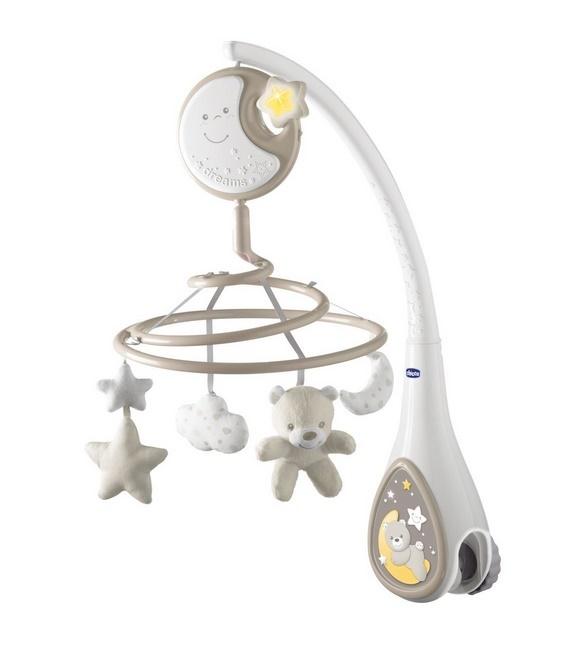 Karuzela z zabawkami Next2Dreams z serii Chicco First Dreams to pierwsza karuzela zaprojektowana specjalnie do montażu na łóżeczkach Next2Me, a także większości drewnianych łóżek dziecięcych. Karuzela towarzyszy dziecku w rytuale wieczornym, wprowadzając je w stan relaksu, wyciszenia i spokojnego zapadania w sen. To wszystko dzięki efektom, które są elementem zabawki: dźwięki muzyki, biały szum i delikatne oświetlenie.