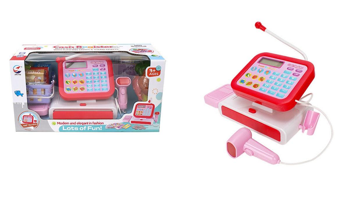 Kasa sklepowa wraz z akcesoriami (koszyk, artykuły spożywcze, pieniądze). Zasilanie: baterie 3xAA (nie są dołączone).