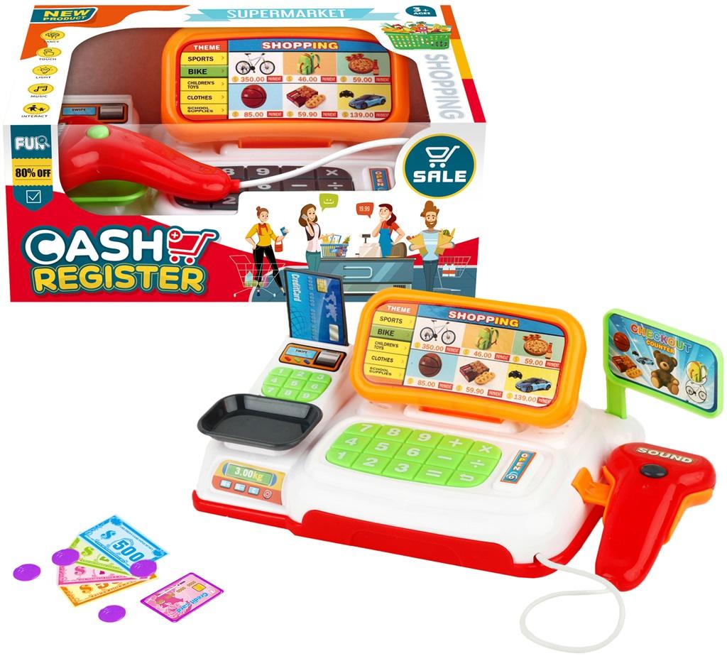 Kasa sklepowa ze światłem, dźwiękiem i akcesoriami.