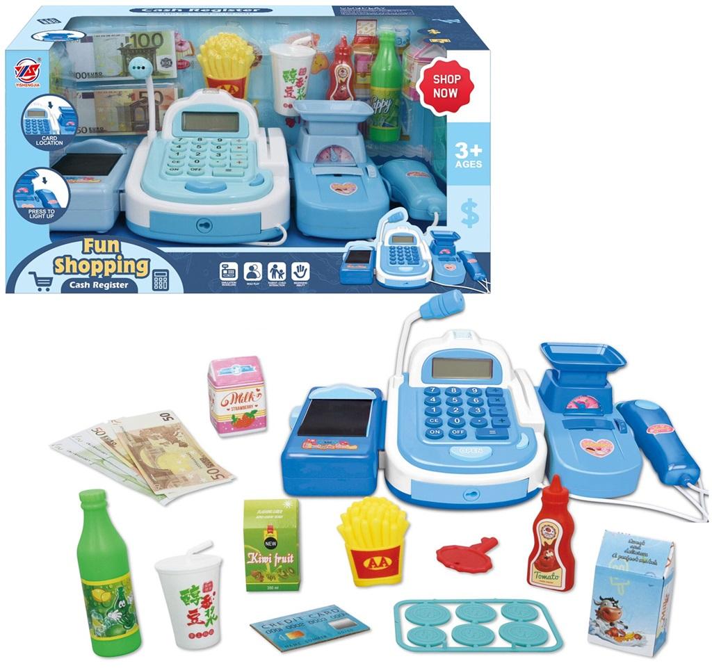 Kasa sklepowa ze światłem, dźwiękiem i akcesoriami.