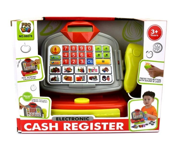 Kasa ze skanerem, banknotami i kartą płatniczą, dziecko ma świetną zabawę, jak również przygotowanie do codziennych obowiązków jakimi zajmują się rodzice ""Zakupy"". W zabawie kupowaniu, jak i sprzedawaniu pomaga skaner, którym nabijamy dane produkty, jak w prawdziwym markecie. Dziecko bawiąc się, uczy się liczyć, przyjmując banknoty za sprzedane produkty. Kasa na baterie, posiada efekty świetlne, dźwięk. Pełen zestaw akcesoriów. Kasa wyposażona w kalkulator co pozwoli dziecku poznać zasady matematyki i handlu.