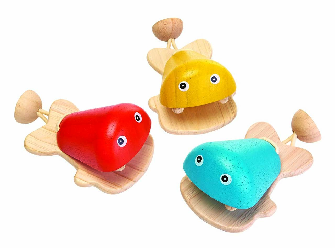 Nowa wersja kastanietów, w nowej odsłonie widać więcej drewna. Prosty instrument zachęcający dziecko do pierwszych poszukiwań muzycznych.
