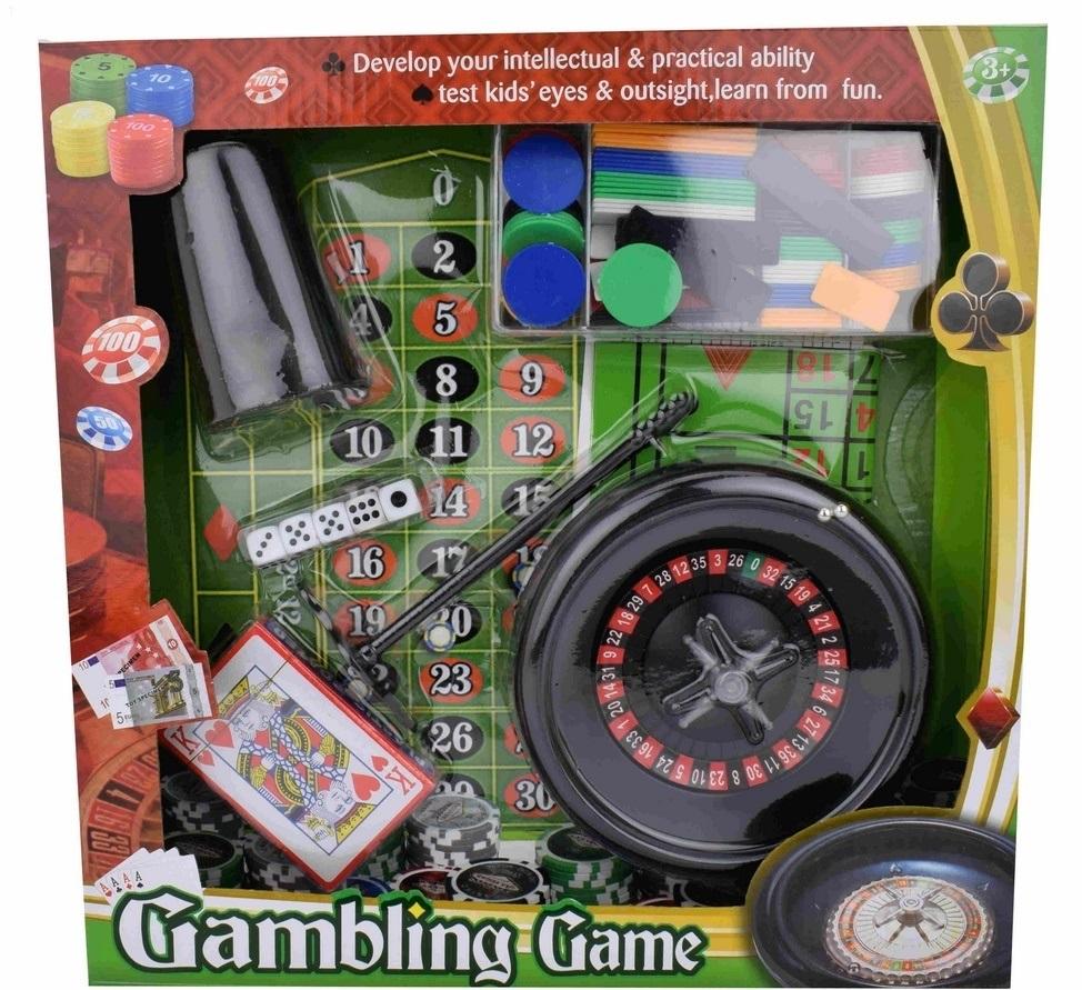 Doskonała rozrywka dla kilku osób. Zestaw składa się z gier losowych ale sporo zależy też od umiejętności graczy.Rekomendowana dla wieku 7+. Zawiera koło do ruletki, komplet żetonów, łapkę do zgarniania żetonów, kości do gry, kubek do kości i talię kart.