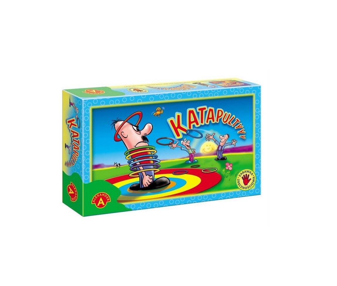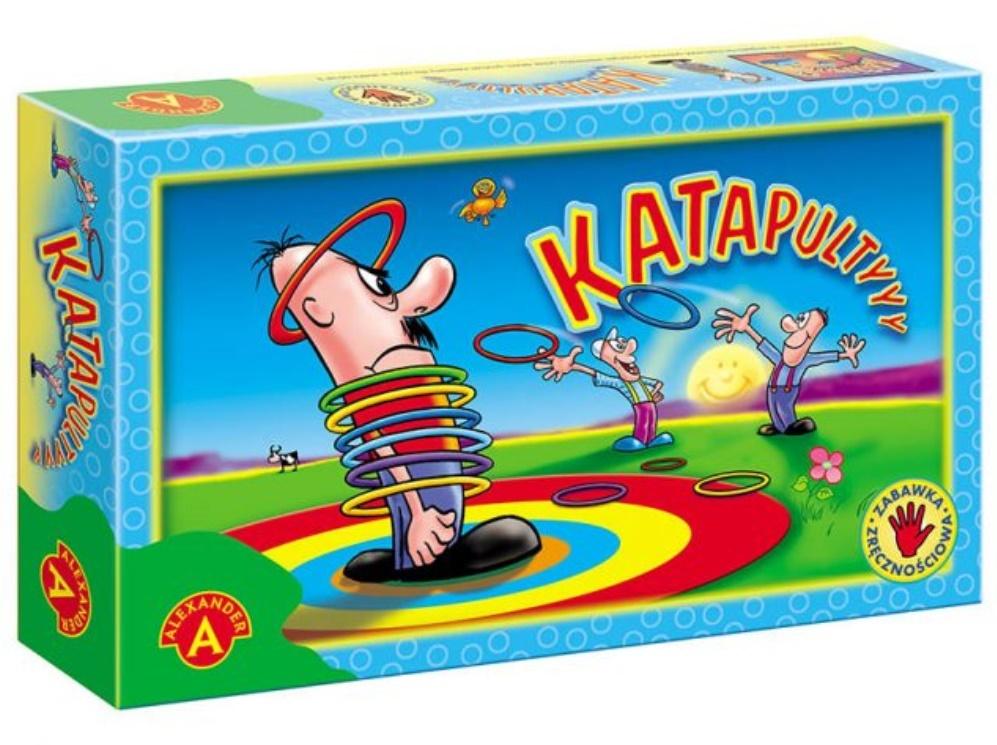 Sporo emocji i mnóstwo wesołej zabawy zapewni wszystkim uczestnikom gra w "Katapulty". Ta emocjonująca zabawa adresowana jest dla całej rodziny - dla dzieci i dorosłych. Oprócz znakomitej zabawy "Katapulty" umożliwiają graczom trening cierpliwości, koncentracji i precyzji ruchu. W "Katapulty" wygrywa ten, kto pierwszy umieści komplet swoich pierścieni na ustawionym pośrodku słupku. Zawartość pudełka: słupek z podstawką, 3 wyrzutnie, 9 obręczy, instrukcja. Wiek graczy: 5+ Liczba graczy: 1-3