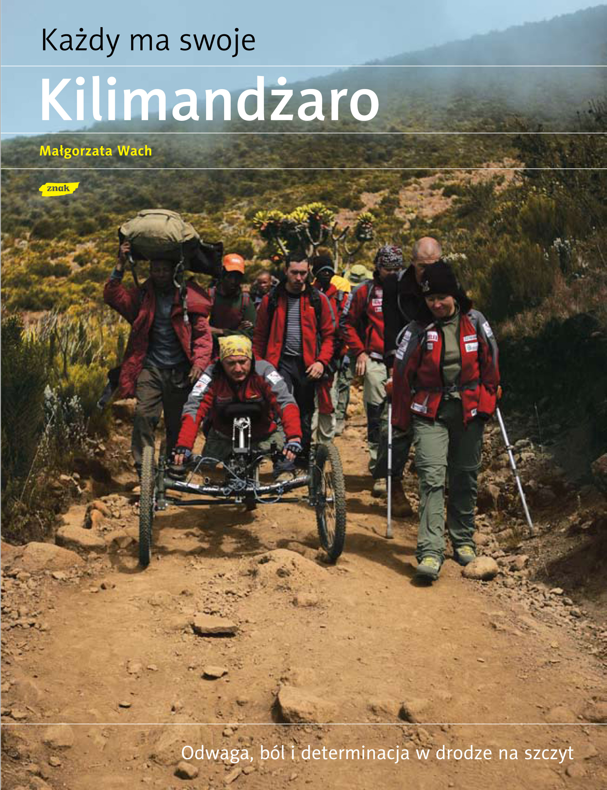 ”Sto metrów wyżej swoją walkę toczy Angelika. Idzie z nią trzech tragarzy i Bogdan. Co dziesięć minut zmieniają się, niosąc Angelikę na plecach. Po kilku takich zmianach jeden z tragarzy całkiem opada z sił. Angelika patrzy w ciemność z nadzieją, że zobaczy Gilman's Point, ale to niemożliwe. „Popatrzyłam na twarze tragarzy i Bogusia. Były śmiertelnie blade, mieli nieobecne oczy i z trudem łapali oddech. Nogi po kolana zapadały im się w pyle i żwirze. Czułam ich mękę i marzyłam o tym, żeby nic nie ważyć. Miałam skostniałe ręce i nogi, bolał mnie cały kręgosłup. Chciało mi się płakać, ale resztką sił się powstrzymałam. Nie chciałam ich jeszcze bardziej osłabiać. A potem znów usłyszałam ciężki oddech Bogusia oraz przewodników i powiedziałam, że schodzę na dół. «Co ty mówisz?» - zapytał Bogdan, jakby się ocknął z letargu. «Schodzę na dół. Dziękuję za wszystko! A ty idź na górę!» - odpowiedziałam. Zazwyczaj mam problemy z podejmowaniem decyzji. Wtedy nie miałam wątpliwości. To było moje Kilimandżaro” - powie po powrocie z wyprawy.” fragment książki   5895 metrów nad poziomem morza. Na taką wysokość wznosi się słynne Kilimandżaro, najwyższa góra Czarnego Lądu. We wrześniu na jej szczyt wyruszyła z Polski niezwykła wyprawa, zorganizowana przez Fundację „Mimo Wszystko”, złożona z dziewięciu niepełnosprawnych osób. Wśród nich znaleźli się między innymi: Jan Mela, najmłodszy zdobywca obu biegunów, który w wyniku porażenia prądem stracił prawą rękę i lewą nogę, Katarzyna Rogowiec, wybitna paraolimpijka i złota medalistka z Turynu, niewidomy od urodzenia Łukasz Żelechowski oraz Krzysztof Gardaś, dla którego to już drugie wejście na ten szczyt. Oprócz zmagania się z dużymi różnicami temperatur, rozrzedzonym powietrzem i zmęczeniem, przyszło im się zmierzyć przede wszystkim ze swoimi słabościami i ograniczeniami. Uczestnicy zdobyli szczyt 5 października 2008 r. o godz. 7.30. Część pieniędzy ze sprzedaży książki zostanie przekazana Fundacji Anny Dymnej „Mimo Wszystko”. Przeczytaj recenzję