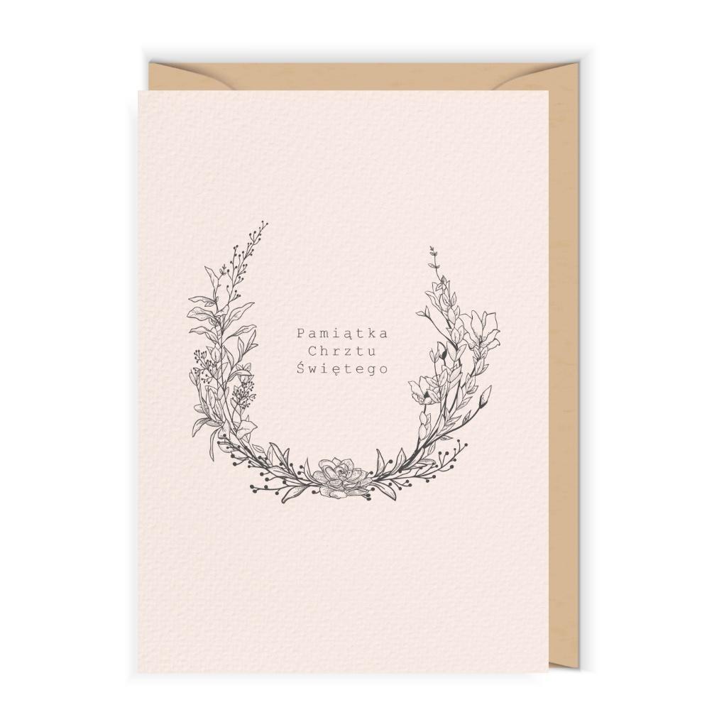 Otwierana kartka, pusta w środku, wykonana na papierze (z certyfikatem EFC) z wyraźnie widoczną fakturą. W zestawie ekologiczna koperta.