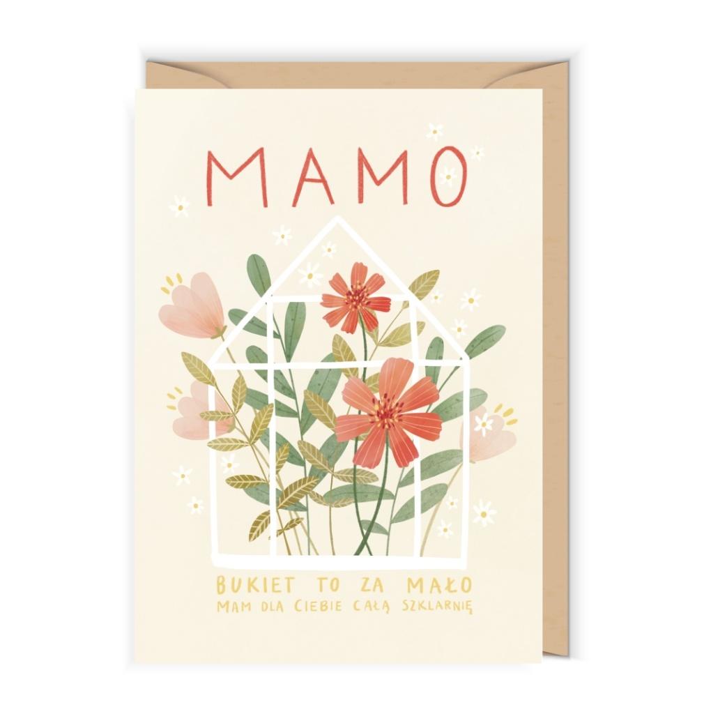 Otwierana kartka, pusta w środku, wykonana na papierze (z certyfikatem EFC) z wyraźnie widoczną fakturą. W zestawie ekologiczna koperta.