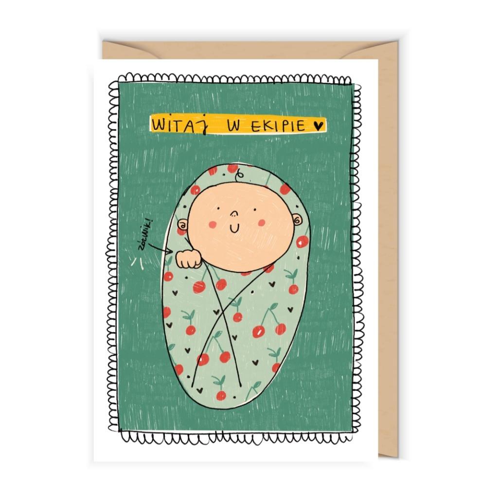 Otwierana kartka, pusta w środku, wykonana na papierze (z certyfikatem EFC) z wyraźnie widoczną fakturą. W zestawie ekologiczna koperta.