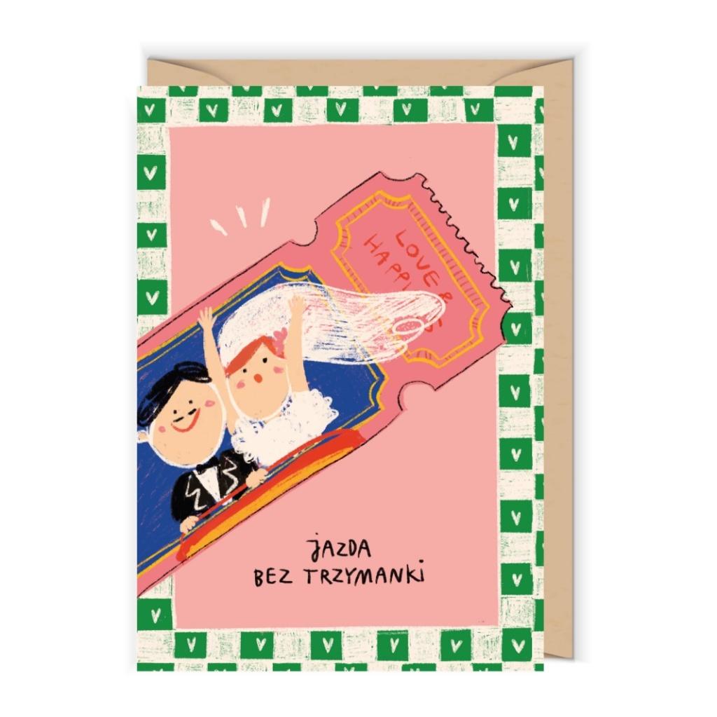 Otwierana kartka, pusta w środku, wykonana na papierze (z certyfikatem EFC) z wyraźnie widoczną fakturą. W zestawie ekologiczna koperta.
