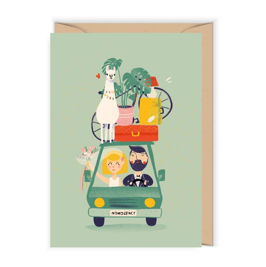 Otwierana kartka, pusta w środku, wykonana na papierze (z certyfikatem EFC) z wyraźnie widoczną fakturą. W zestawie ekologiczna koperta.