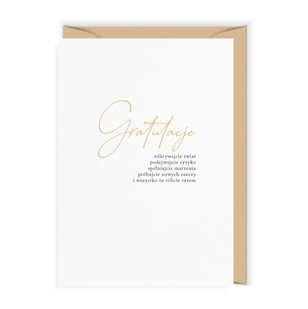 Otwierana kartka, pusta w środku, wykonana na papierze (z certyfikatem EFC) z wyraźnie widoczną fakturą. W zestawie ekologiczna koperta.