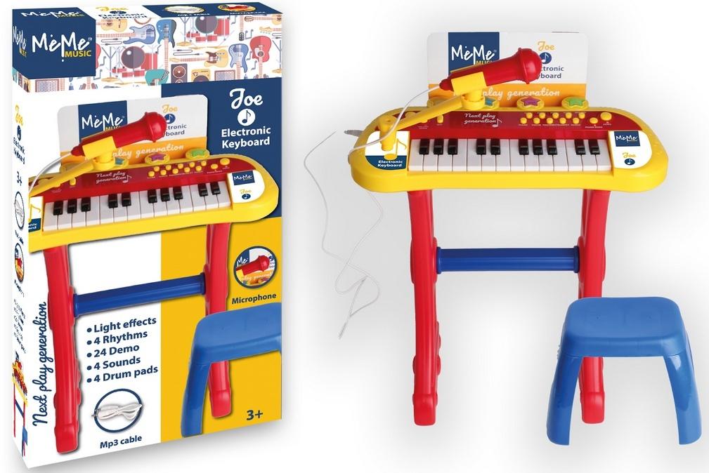 Elektroniczny keyboard z 24 klawiszami, mikrofonem oraz stołeczkiem. Instrument posiada 4 wgrane dźwięki, rytmy, dźwięki perkusyjne, 24 piosenki demo, kolorystyczne efekty świetlne, funkcję OKON (one key one note, która służy do nauki), możliwość regulacji dźwięki oraz wejście mp3. Kabel aux w zestawie.