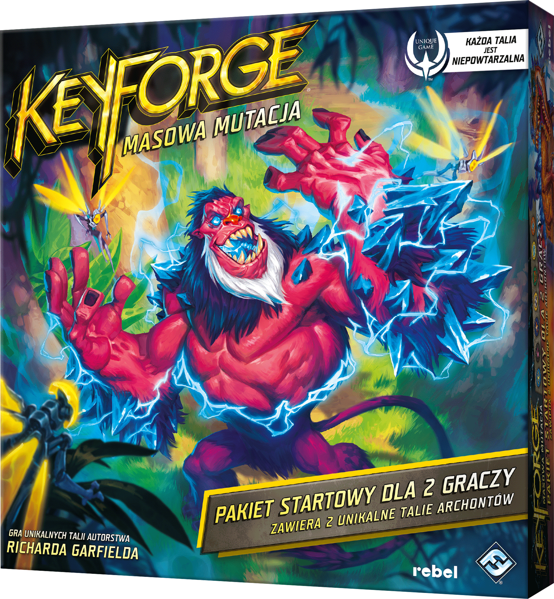 To pierwsza na świecie unikalna gra karciana. Oznacza to tyle, że na całym świecie nie ma dwóch talii o tej samej kombinacji kart. Dzięki ogromnej liczbie dostępnych artefaktów, stworzeń i umiejętności, możliwe było wydrukowanie setek tysięcy różniących się między sobą zestawów. Co więcej - talie KeyForge są kompletne i nie podlegają modyfikacjom, nie ma więc mowy o kupowaniu boosterów w nadziei na trafienie rzadkiej karty, która wzmocni naszą siłę.