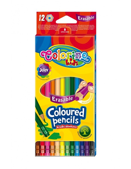 Opakowanie Kids kredki ołówkowe Colorino heksagonalne wymazywalne z gumką 12 kolorów