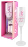 Urodzinowy kieliszek z okazji osiemnastych urodzin zapakowany w estetyczne , kolorowe pudełko.