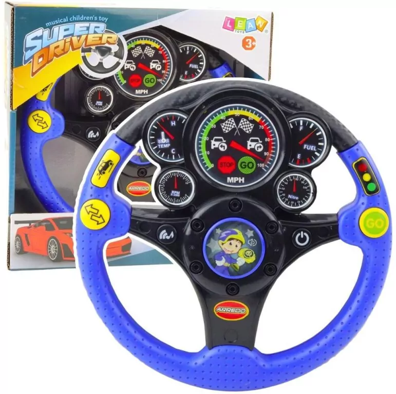 KIEROWNICA INTERAKTYWNA DLA DZIECI Z EFEKTAMI DŹWIĘKOWYMI I ŚWIETLNYMI Interaktywna kierownica dla dzieci to doskonała propozycja dla małych miłośników motoryzacji, którzy pragną poczuć się jak prawdziwi kierowcy. Zabawka została wyposażona w bogaty zestaw efektów dźwiękowych, świetlnych oraz wibracyjnych, które doskonale imitują prawdziwe wrażenia z jazdy. Dzięki funkcji imitowania dźwięków klaksonu, kierunkowskazów czy odgłosów jazdy oraz podświetlanym zegarom, dziecko ma możliwość interaktywnej i realistycznej zabawy. Kierownica posiada 7 przycisków funkcyjnych, z których każdy aktywuje inne efekty - od dźwięków silnika, przez światła, aż po melodie i wibracje. Przycisk ON/OFF w formie stacyjki pozwala dziecku rozpocząć zabawę niczym w prawdziwym aucie. Podświetlenie imitacji zegarów oraz realistyczne wibracje wzmacniają efekt obecności w kabinie samochodu. Zabawka doskonale wspomaga rozwój zmysłów, koordynacji ruchowo-wzrokowej oraz wyobraźni. SPECYFIKACJA: Wymiary kierownicy: ok. 23 x 4,5 cm Wymiary opakowania: ok. 25,5 x 5,5 x 25 cm Zasilanie: 3 x AA 1,5V (brak w zestawie) Efekty: dźwiękowe, świetlne, wibracje Ilość przycisków funkcyjnych: 7 ZAWARTOŚĆ ZESTAWU: Kierownica interaktywna Opakowanie
