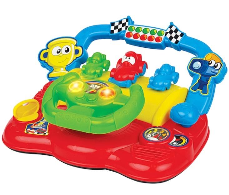 Skręcając kierownicą słychać pisk opon, a samochodziki zaczynają się poruszać.