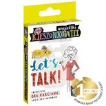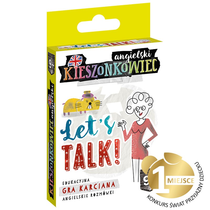 „Let’s Talk” to nietypowa gra karciana dla dorosłych, młodzieży i dzieci już od 9. roku życia. Gra zapewni nie tylko wiele chwil emocjonującej zabawy, lecz także umożliwi naukę gotowych zwrotów konwersacyjnych przydatnych w wielu codziennych sytuacjach: w domu, w szkole i w sklepie, np. be up to something, fancy doing something, look around. Na kartach znajdziesz także przykładowe odpowiedzi i reakcje. Kolorowa talia z 55 kart służy do gry w cztery edukacyjne gry towarzyskie: memory, klapka, karuzelę i szachraja. Zasady każdej z gier opisane zostały w specjalnej instrukcji. Naukę ułatwia także słowniczek z tłumaczeniem angielskich zwrotów, które pojawiły się na kartach. W zapamiętywaniu pomogą kapitalne ilustracje Macieja Łazowskiego. Nad stroną merytoryczną czuwała Dorota Kondrat, nauczycielka języka angielskiego i twórczyni niestandardowych projektów edukacyjnych. Wygodny format kart sprawia, że zmieszczą się w kieszeni i sprawdzą w każdych okolicznościach – w domu, w podróży czy w szkole. W edukacyjnej serii Kieszonkowców znajdują się karty do nauki języka angielskiego, matematyki i rozwijania myślenia logicznego. Wszystkie zostały przygotowane przez specjalistów i zilustrowane przez utalentowanych polskich rysowników.