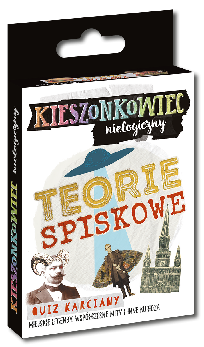 1 talia = aż 162 niewiarygodne teorie Blizna po szczepionce to znamię bestii, rząd amerykański współpracuje z kosmitami w strefie 51, światem rządzą humanoidalne jaszczury, a z samolotów celowo rozpryskiwane są toksyczne chemikalia i śmiercionośne wirusy. Prawda czy fałsz? Kieszonkowiec nielogiczny Teorie spiskowe to wyjątkowy quiz karciany składający się z fascynujących, przerażających, a czasem absurdalnie śmiesznych 162 miejskich legend, współczesnych mitów i innych kuriozów. Całkiem możliwe, że wśród prezentowanych w Kieszonkowcu opowieści znajdziecie takie, w których prawdziwość nigdy nie wątpiliście. Może wasze dzieciństwo zrujnowała pogłoska, że guma Turbo powoduje raka? Nie ma się czego wstydzić! Wśród informacji o świecie, które do nas docierają, zdarzają się nieprawdziwe, dlatego w epoce fake newsów warto ćwiczyć się w tropieniu i rozpoznawaniu nonsensów, w czym pomocny może okazać się ten quiz. Quiz karciany idealnie sprawdzi jako atrakcyjne urozmaicenie każdej towarzyskiej imprezy. Dzięki quizowi zabłyśniesz w towarzystwie i zagniesz znajomych! Do współpracy przy serii Kieszonkowce zaproszono utalentowanych polskich ilustratorów. Teorie spiskowe zilustrował Maciej Bohdanowicz, a pytania opracował Marcin Napiórkowski. Uwaga! Efekt uboczny grania: Stracisz poczucie rzeczywistości, zapomnisz, co to zdrowy rozsądek, przestaniesz ufać własnym zmysłom i … już nigdy nie zjesz końcówki banana! W serii Kieszonkowce znajdują się również karty do nauki języka angielskiego, matematyki, geografii i rozwoju myślenia logicznego. Kieszonkowce z serii school: · Kieszonkowiec angielski Remember & Forget (9+) · Kieszonkowiec angielski Bitter Sweet (9+) · Kieszonkowiec angielski What’s up (15+) · Kieszonkowiec angielski Let’s talk (9+) · Kieszonkowiec angielski Piece of cake (15+) · Kieszonkowiec matematyczny Trzecia połowa (10+) · Kieszonkowiec matematyczny Na 200% (11+) · Kieszonkowiec matematyczny Trzy po trzy (8+) · Kieszonkowiec geograficzny Gdzie Rzym, a gdzie Krym (7+) · Kieszonkowiec geograficzny Obieżyświat (8+) · Kieszonkowiec przyrodniczy Zoo liga (8+) Kieszonkowce rodzinne: · Kieszonkowiec logiczny Na logikę (12+) · Kieszonkowiec logiczny Dzika logika (12+) · Kieszonkowiec futbolowy Hattrick Kieszonkowce dla dorosłych: · Kieszonkowiec kultowy PRL · Kieszonkowiec nielogiczny Teorie spiskowe Kieszonkowiec rozrywkowy Popkultura