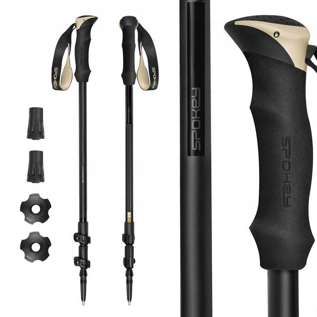 Kije trekkingowe wykonane z aluminium. Trzysegmentowa konstrukcja z regulacją długości w zakresie od 105 do 135 cm umożliwia łatwe dopasowanie kijów do wzrostu użytkownika. Po złożeniu do minimalnej wielkości zajmują niewiele miejsca. Uchwyty z wysokogatunkowej pianki EVA zwiększają komfort użytkowania podczas dłuższych wypraw. Dodatkowym atutem jest system regulacji paska Fast Fit, który pozwala na szybkie i łatwe dopasowanie do nadgarstka. Kije zakończono widiowymi grotami odpowiedzialnymi za trwałość i wykazującymi podwyższoną odporność na ścieranie. W zestawie znajdują się gumowe końcówki do marszu po twardej nawierzchni oraz wymienne talerzyki na sezon letni.