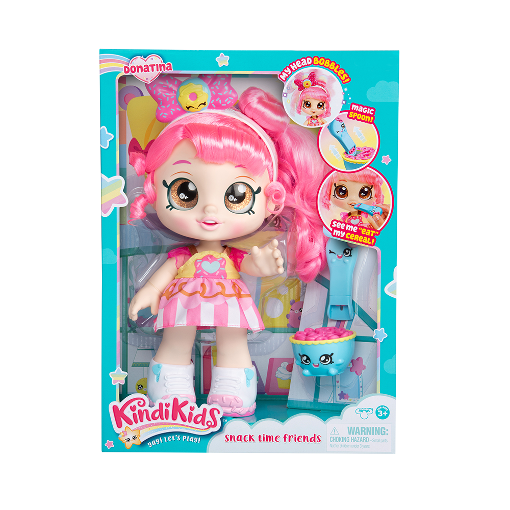 Donatina to lalka o słodkich, różowych włosach i dużych błyszczących oczach. Kiedy weźmiemy ją w dłonie - lalka „ożywa” delikatnie poruszając głową. Lalka ma ściągane ubranka oraz buciki. W zestawie znajdują się dwa interaktywne akcesoria: miseczka z płatkami i magiczna łyżeczka. Aby nakarmić naszą lalkę wystarczy wyjąć łyżeczkę z płatkami i przyłożyć do ust Donatiny, a one same "znikają".