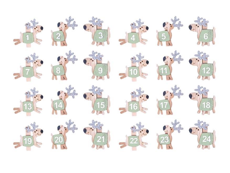 Opakowanie Klamerka drewniana kalendarz adwentowy renifer