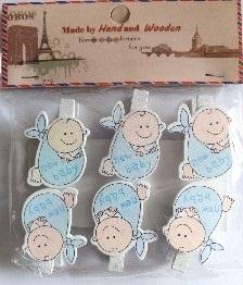 Klamerki ozdobne we wzory niemowlęce w opakowaniu z dziurką umożliwiającą zawieszanie. Opakowanie zawiera 6 klamerek z elementami ozdobnymi. Podana cena jest ceną za 1 opakowanie.Minimalna zamawiana ilość wynosi 5 opakowań. Kod towaru : PEG-3130