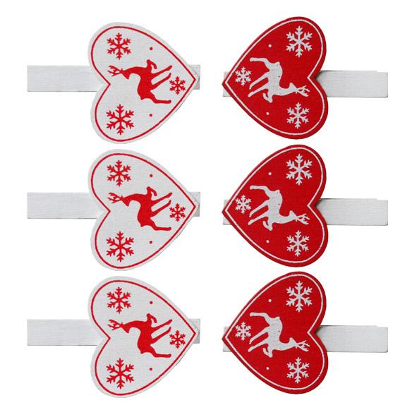Opakowanie Klamerki ozdobne Serca czerwone i białe (6 szt)