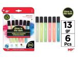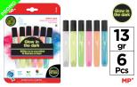 Tuba z klejem brokatowym. Dodaje blasku i zabawy wszystki mprojektom artystycznym dla dzieci w wieku od 3 lat. Idealny do ozdabiania rękodzieła wykonanego z papieru lub tektury. Do życzeń świątecznych,kartek urodzinowych i wszelkich prac ręcznych. Cienka rurka o średnicy 2 mm zapewnia precyzyjne, szybkie i łatwe użytkowanie. Łatwy do usunięcia z większości tkanin. Świecą w ciemności:fluorescencyjne, po wyłączeniu światła kolory świecą w ciemności! Blister 6 tub po 13 g w kolorach: białym, żółtym, zielonym, różowym, pomarańczowymi niebieskim.