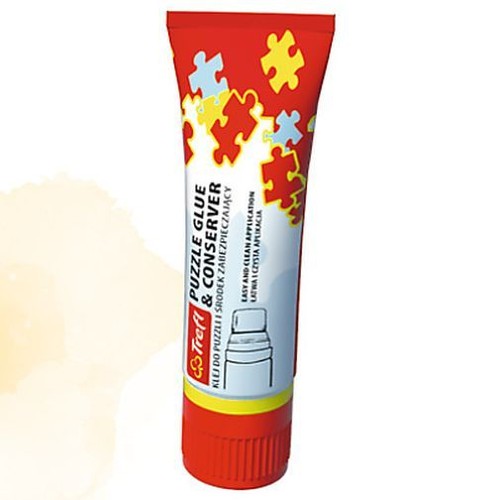 Klej w tubce z gąbką do łatwej i czystej aplikacji to środek konserwujący i klej do puzzli w jednym. Połączone za jego pomocą puzzle można z łatwością przenieść, postawić lub powiesić a ochronna powłoka zabezpiecza je przed zanieczyszczeniami. Rozprowadź klej równomiernie na całej powierzchni z obrazkiem. Zostaw do wyschnięcia. Gotowe!